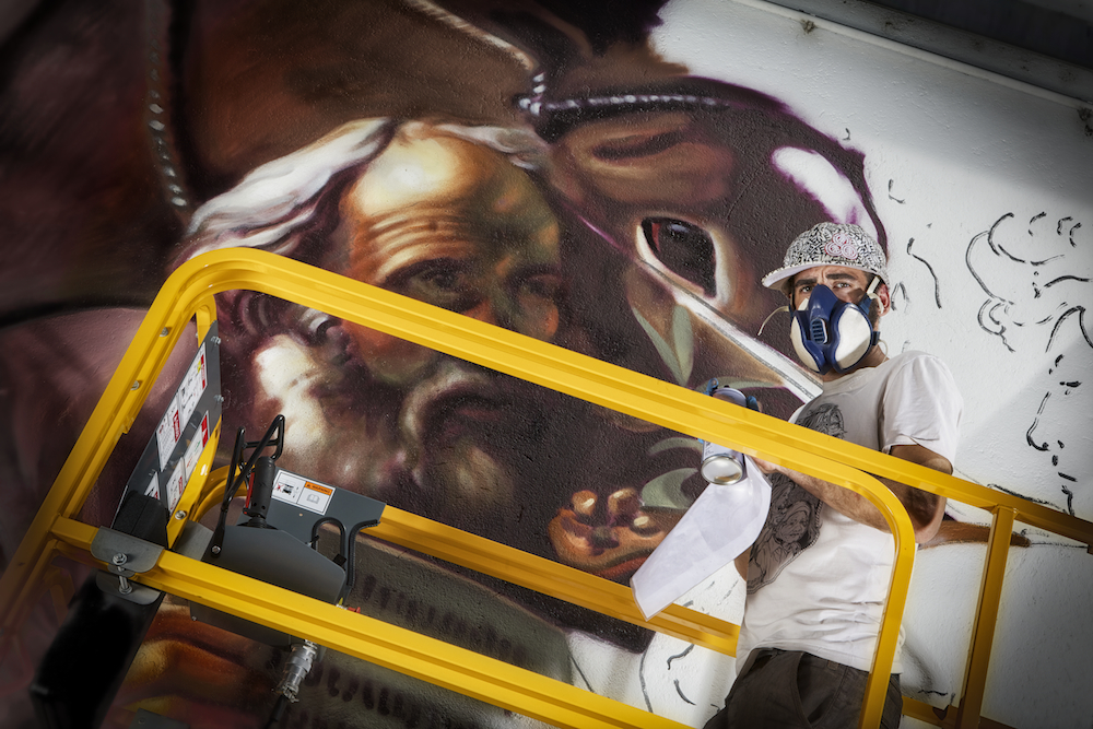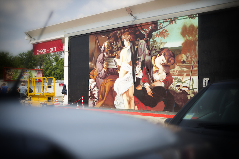 Im Parkhaus Mailand Malpensa hat der Künstler in großer Dimension das Ölgemälde nur mit Spray gesprüht. Das Ergebnis ist exzellent und hat unsere Mitarbeiter sowie unsere Kunden sprachlos gelassen.