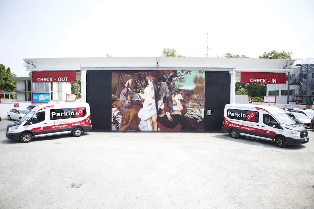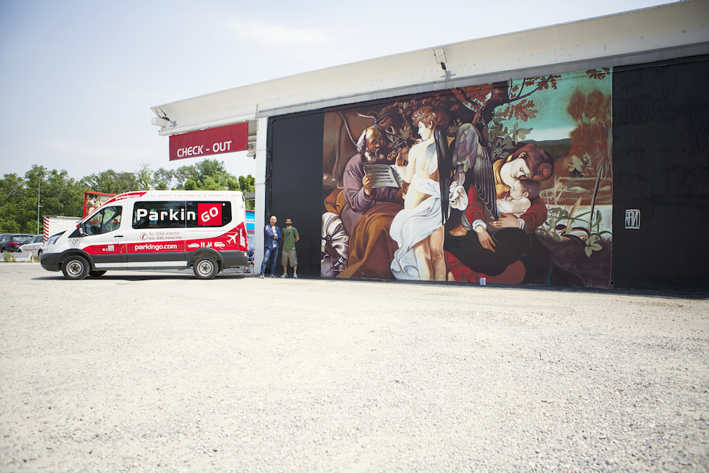 Das ParkinGO Kunst Projekt hat Dank des Künstlervereins mit Andrea Ravo Mattoni, der das Wandgemälde "Riposo durante la fuga in Egitto" in ParkinGO Malpensa, inspiriert vom Meisterwerk Caravaggios, malte, sein Debut Juni 2016. Andrea Ravo Mattoni ist in dieser Art von Initiativen nicht neu: im vergangenen April eroberte er die Aufmerksamkeit der Medien, indem er eine Caravaggio Leinwand "La cattura di Cristo" in einer Unterführung am Rande von Varese malte; ein Kunstwerk, dass der "Urbane Leinwände" hinzugefügt wurde, um die städtischen Gebiete neu zu bewerten. Gesponsert von der Stadt Varese und der Region Lombardei.