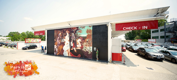L’artiste Andrea Ravo Mattoni repropose la peinture du Caravage “Riposo durante la fuga in Egitto” à l'interieur du parking en aéroport ParkinGO Malpensa. Depuis ce partenariat est né de l'initiative "Projet Art ParkinGO", qui permet au public de découvrir l'art dans des endroits vraiment inattendus: les parkings de l'aéroport.