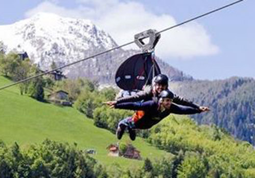 Aimer c'est voler avec le coeur. Vous n'en avez pas assez? En Valtellina, près de Sondrio, vous pouvez éprouver le frisson d'un VRAI vol, ou s'en approcher! Grace à l'aérofune, un câble d'acier solidement fixé à deux montagnes opposées, de façon à obtenir une légère pente. Grace à un harnais spécial, vous serez attaché à un chariot qui circule librement à travers une belle vallée. Osez sauter et allez-y! Vous volez ensemble au dessus de paysages à couper le souffle. L'arrivée? Doux et sécuritaire, grâce à un système de freinage spécial qui permet de ralentir de façon naturelle et sans "secousses".