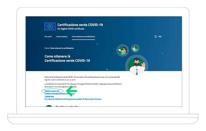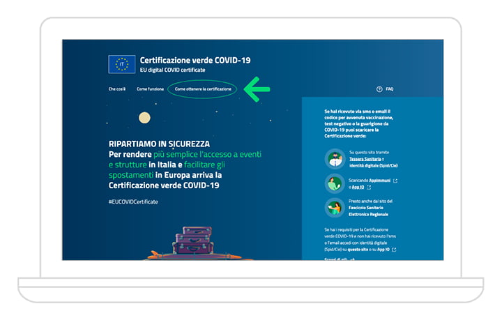 - Visita il sito www.dgc.gov.it/web/, e clicca su “Come ottenere il certificato”.