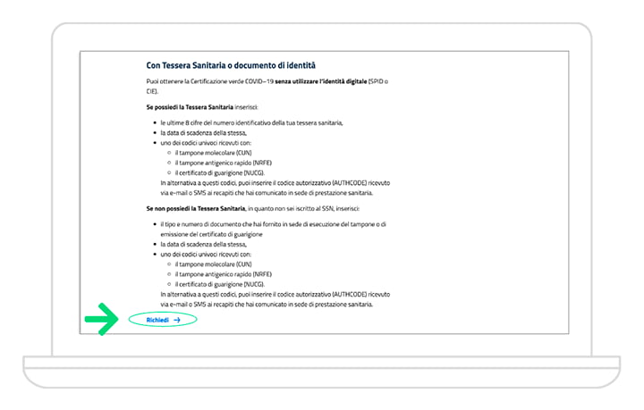 - Scorri verso il basso fino a “Con Tessera Sanitaria o documento d’identità”, e clicca su “Richiedi”.