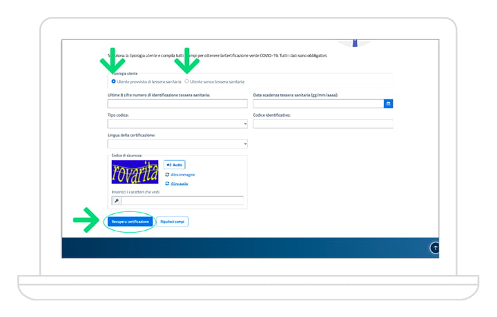 Sulla piattaforma governativa (www.dgc.gov.it/web/) esistono diverse procedure per ottenere il Green Pass, riportiamo qui sotto quella più semplice: