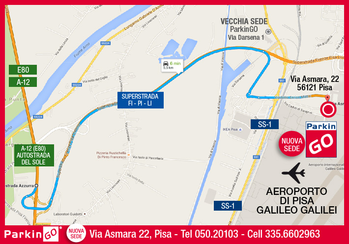 Ecco le indicazioni stradali per raggiungere la nuova sede ParkinGO PISA: