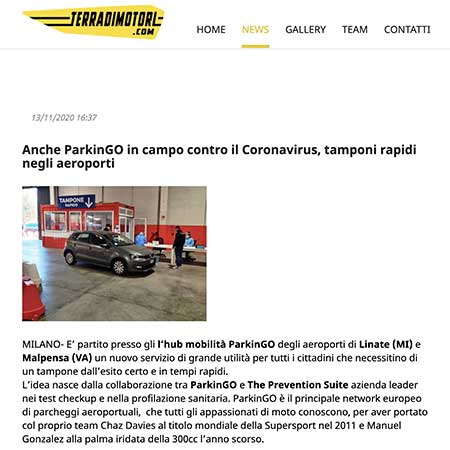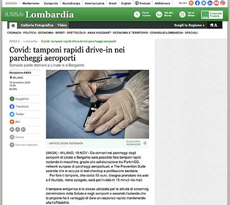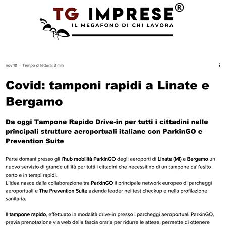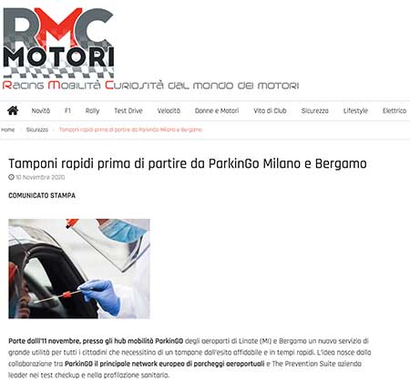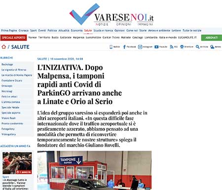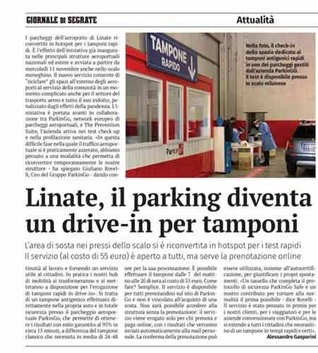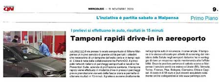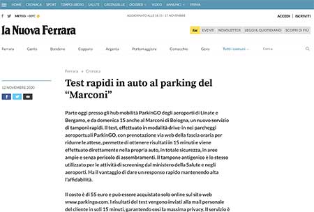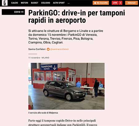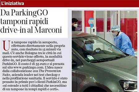 Rassegna stampa del servizio ParkinGO Tampone Rapido Drive-in
