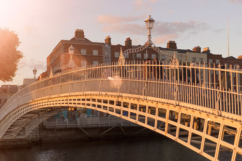 Tra le tappe irrinunciabili, l’Ha’Penny Bridge, il ponte sul fiume Liffey, che prende il nome dal prezzo del traghetto che si prendeva qui (“half penny” appunto).