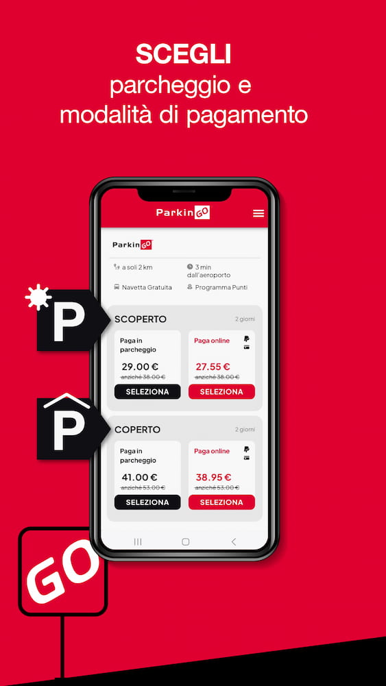 - SELEZIONA IL PARCHEGGIO CHE SODDISFA LE TUE ESIGENZE TRA LA LISTA DELLE NOSTRE PROPOSTE