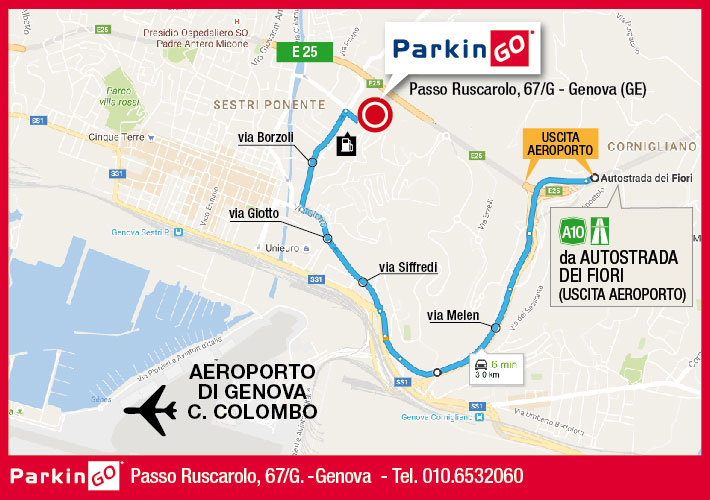 - Il parcheggio in aeroporto ParkinGO Genova si trova a 50 mt sulla sinistra.