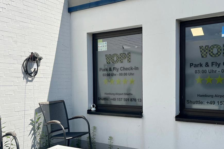 O parque de estacionamento do aeroporto Vopi Park&Fly de Hamburgo está aberto 365 dias por ano e oferece um serviço rentável de vaivém para o levar para a frente do Terminal 1 ou 2 do aeroporto.