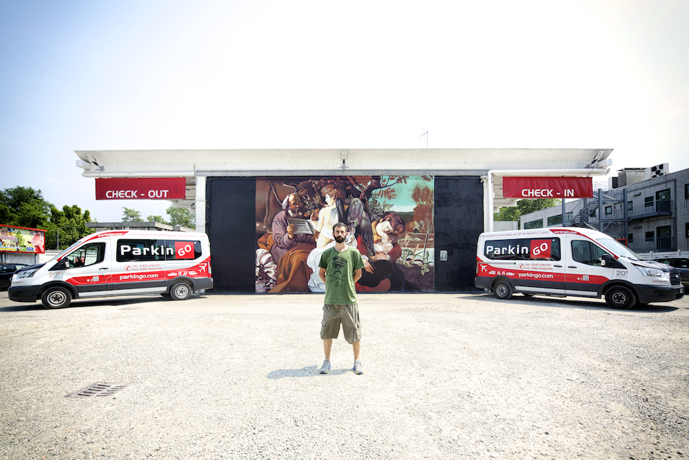 Dentro do parque de estacionamento ParkinGO Milano Malpensa, o artista reproduz a pintura a óleo em grandes dimensões usando apenas spray. O resultado é surpreendente e deixou os operadores da estrutura e os clientes da ParkinGO sem respirar.