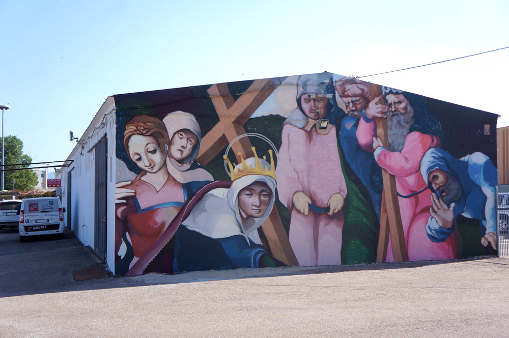 A nova obra-prima confirma a colaboração artística entre a ParkinGO, a artista Andrea Ravo Mattoni e a iniciativa ParkinGO Art Project. Após o incrível sucesso do trabalho de Caravaggio "Descanse em vôo para o Egito", reproduzido no estacionamento de Milão Malpensa, agora é a vez de uma nova obra de arte clássica: "A descoberta da verdadeira Cruz". O trabalho original foi feito no final do século 16 por um pintor da Sardenha, conhecido como Maestro di Ozieri, uma vez que sua verdadeira identidade permanece um mistério.